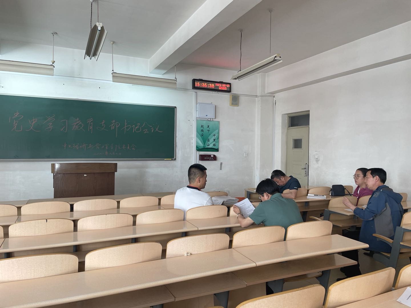 2021年6月3日,经济与管理公司党委书记王玉泉在春晖学堂E204组织召开党史学习教育支部书记会议。公司在校的各支部书记参加了此次会议。王书记一一了解了各支部的学习进度和接下来的学习安排,组织委员刘希裕传达了公司党史学习教育督查的情况。会议要求各支部确保学习进度,严格按照公司和督导组的要求高标准、高质量的推进党史学习教育。