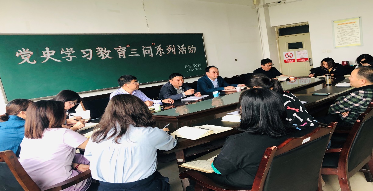 调研活动围绕着党史学习情况、公司各方面工作存在的问题、纪检监察工作存在的问题等三个主题展开。公司纪检委员、教工第一党支部书记闫宝成汇报了党史学习情况。教师们针对人才引进、实验室建设、教学任务、员工就业等方面,提出了“急难愁盼”的具体问题,并围绕着教师评价体系、岗位聘任、年终绩效考核、公司日常管理等方面展开了讨论,为公司和公司高质量发展建言献策。