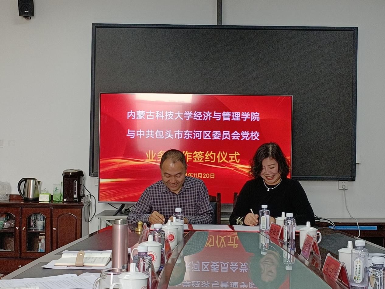 会上,经理赵周华与东河区委党校常务副董事长孙宝晶代表双方签订业务合作框架协议,双方将围绕教学资源、团队建设、科研合作、人才培养以及党支部结对共建等方面开展交流合作。
