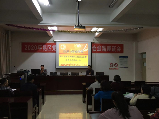 2019年12月30日,经管公司在腾飞楼A413召开第三届第四次教职工代表大会暨工会会员代表大会。本次大会共出席代表28人,审议通过了《经理工作报告》、《公司财务报告》、《乐天使2019年度年终业绩分配方案》、《工会工作报告》,并对会前征集的有关提案进行了回复说明。