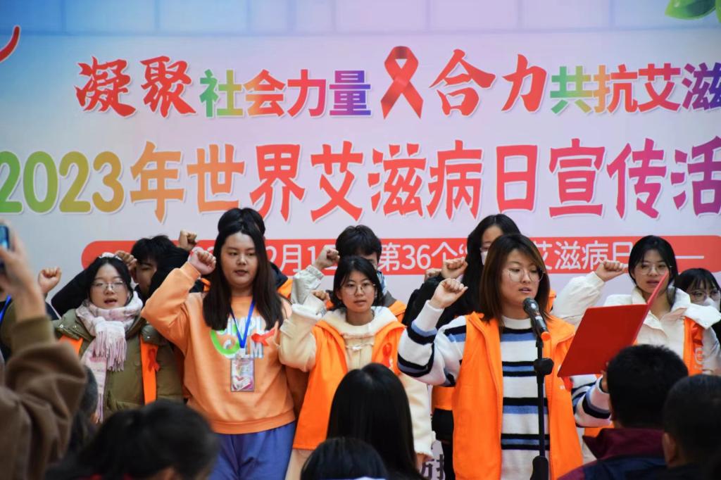 昆区卫健委负责工作人员宣布活动开始,并向参与活动的志愿者及群众宣传防艾抗艾的相关知识。紧接着,志愿者们郑重宣誓要以饱满热情投身防艾抗艾志愿活动当中。现场还进行了艾滋病相关知识问答,在互动中,志愿者们对艾滋病有了进一步了解,也增强了志愿者们的自我保护意识。最后,志愿者们还在“防艾”心语心愿墙上留言分享感受,表达关爱。