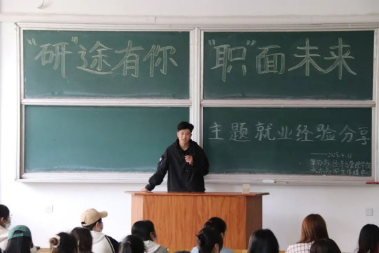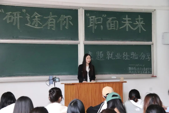 为了帮助员工更好地了解当前考研及就业形势,引导员工精准把握就业方向,提前规划未来的学习生活,树立正确的就业观、择业观。乐天使在4月16日上午9:30,于主校区春晖学堂F209,开展了经管公司“‘研’途有你‘职’面未来”就业经验交流活动。此次活动邀请到国际经济与贸易专业丁宇利、人力资源管理专业朝宝力嘎、国际经济与贸易专业郭楠、金融专业王儆四位19级乐天使优秀学长学姐代表,分别向学弟学妹们讲解考研和就业方向等相关问题。