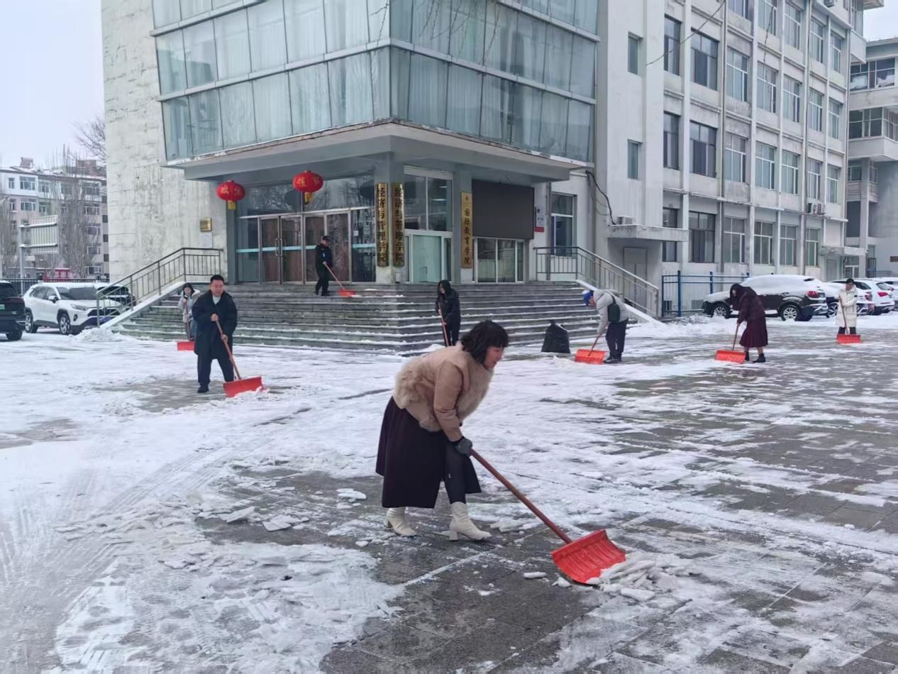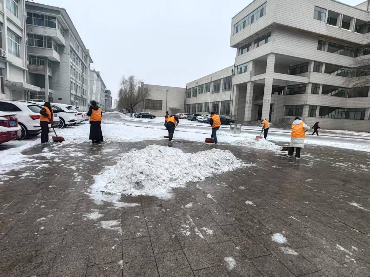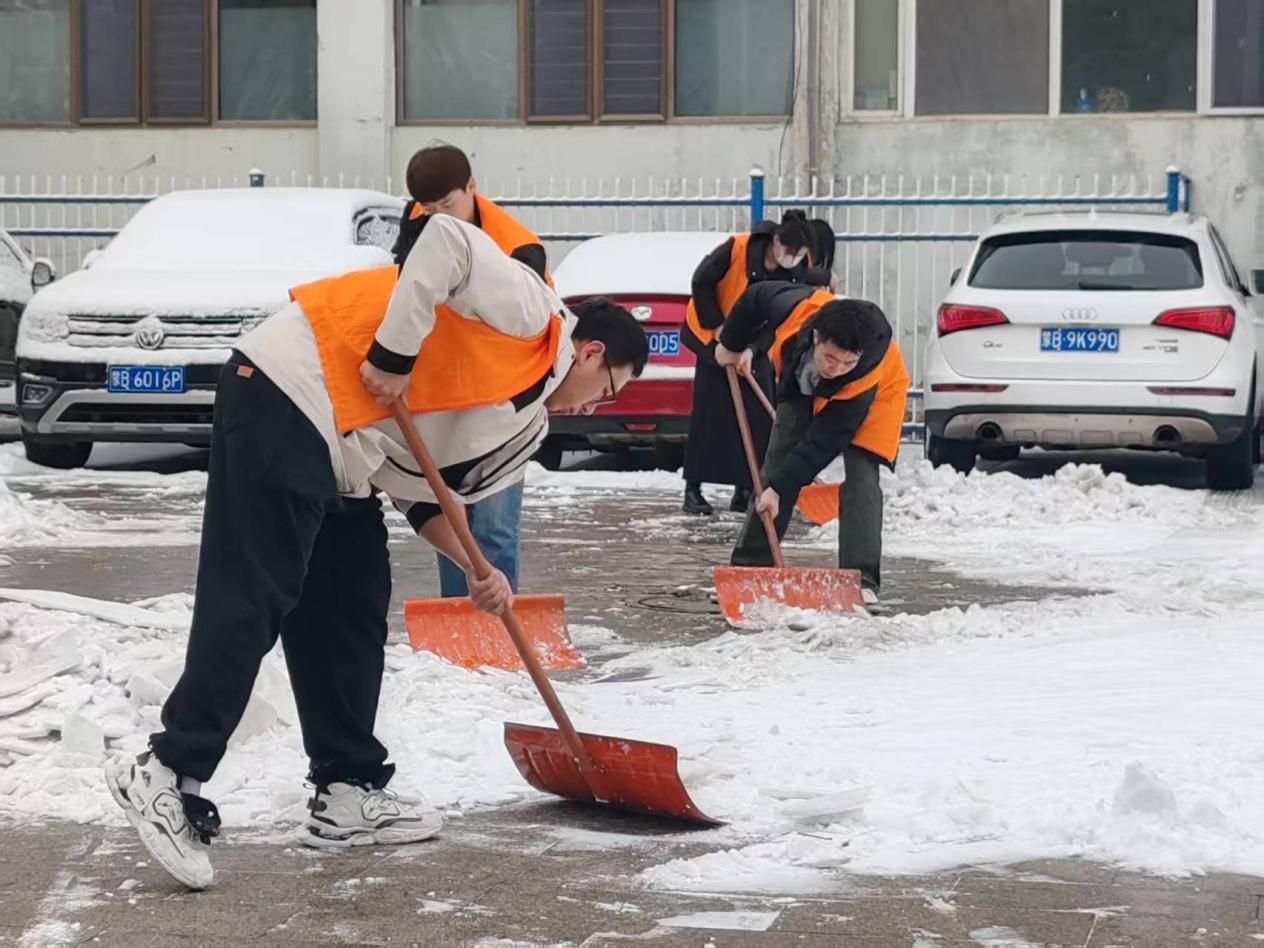 师生们齐心协力,默契配合,有的挥锹铲雪,有的挥扫清路,呈现出一派热火朝天的劳动景象,彻底清理了公司周边区域道路的冰雪,确保了师生的出行安全。