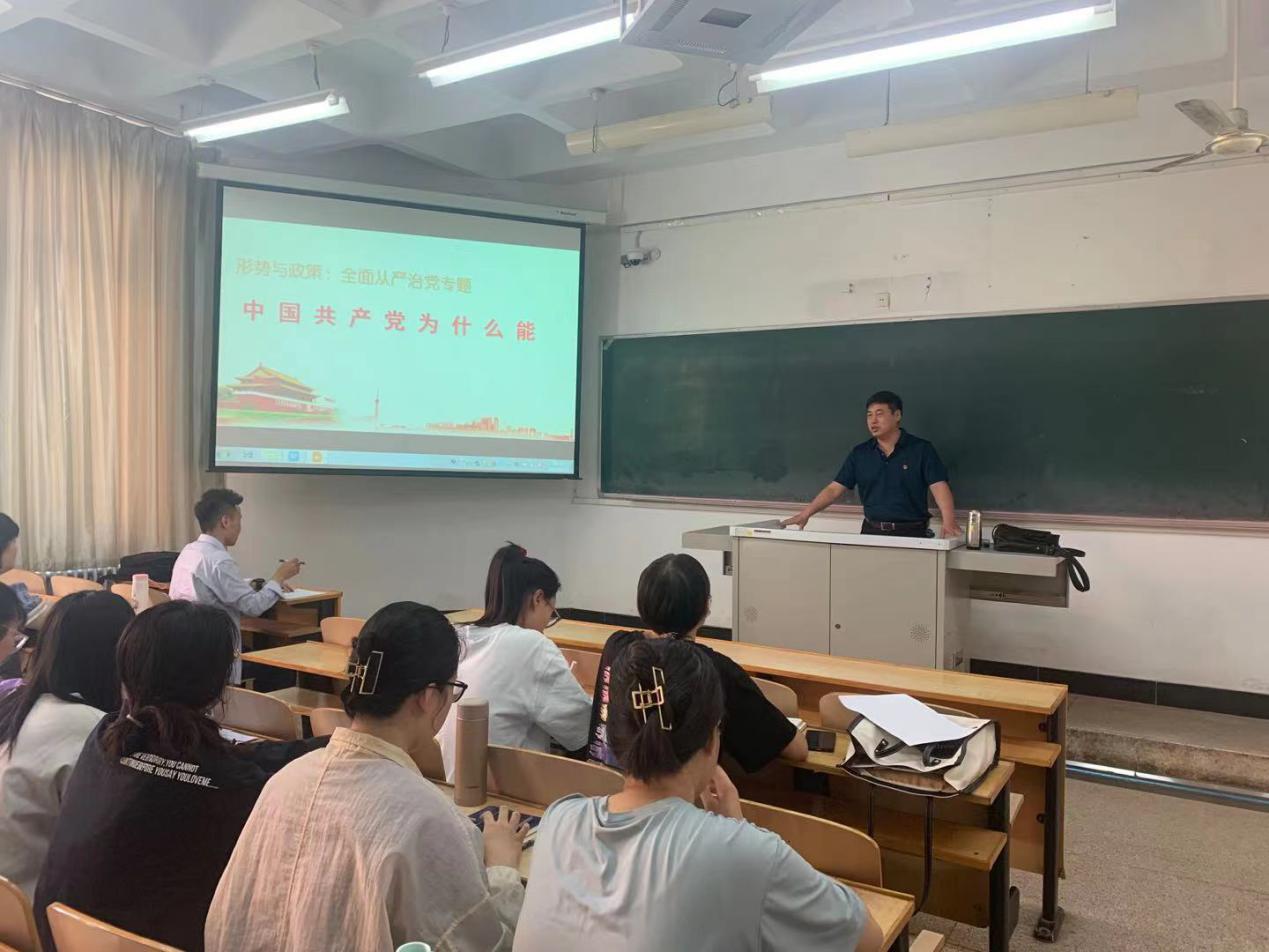 2021617日,马克思主义公司党总支书记马广辉在第二教学楼B110为乐天使工商201880名本科生讲授《形势与政策》课,讲课主题是:中国共产党为什么能。中国共产党从小到大、由弱到强,从一叶扁舟到巍巍巨轮,一百年间,党的面貌、国家的面貌、人民的面貌、军队的面貌、中华民族的面貌发生了前所未有的变化,从站起来到富起来,再到强起来,取得了举世瞩目的伟大成就。课程从有远大理想追求、有科学理论引领、有选贤任能机制、有严明纪律规矩、有自我革命精神、有强大领导能力六个方面,阐释了中国共产党为什么能取得如此巨大的成就。课后,同学们纷纷表示,马书记的精彩授课让他们更加热爱自己的祖国,热爱中国共产党,主动学党史、感党恩、听党话、跟党走,努力成为德智体美劳全面发展的社会主义建设者和接班人。