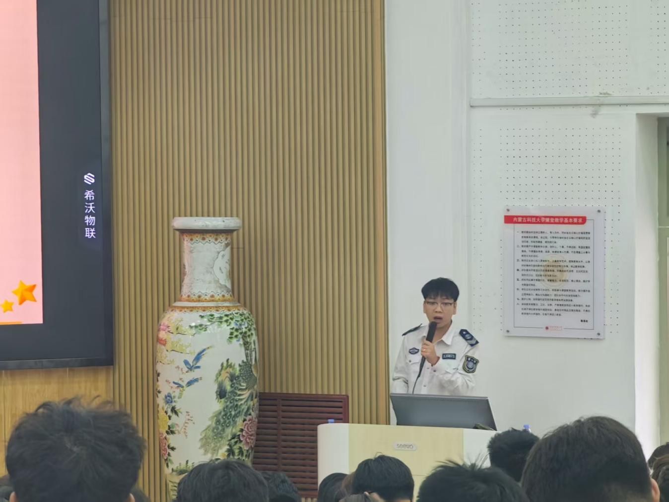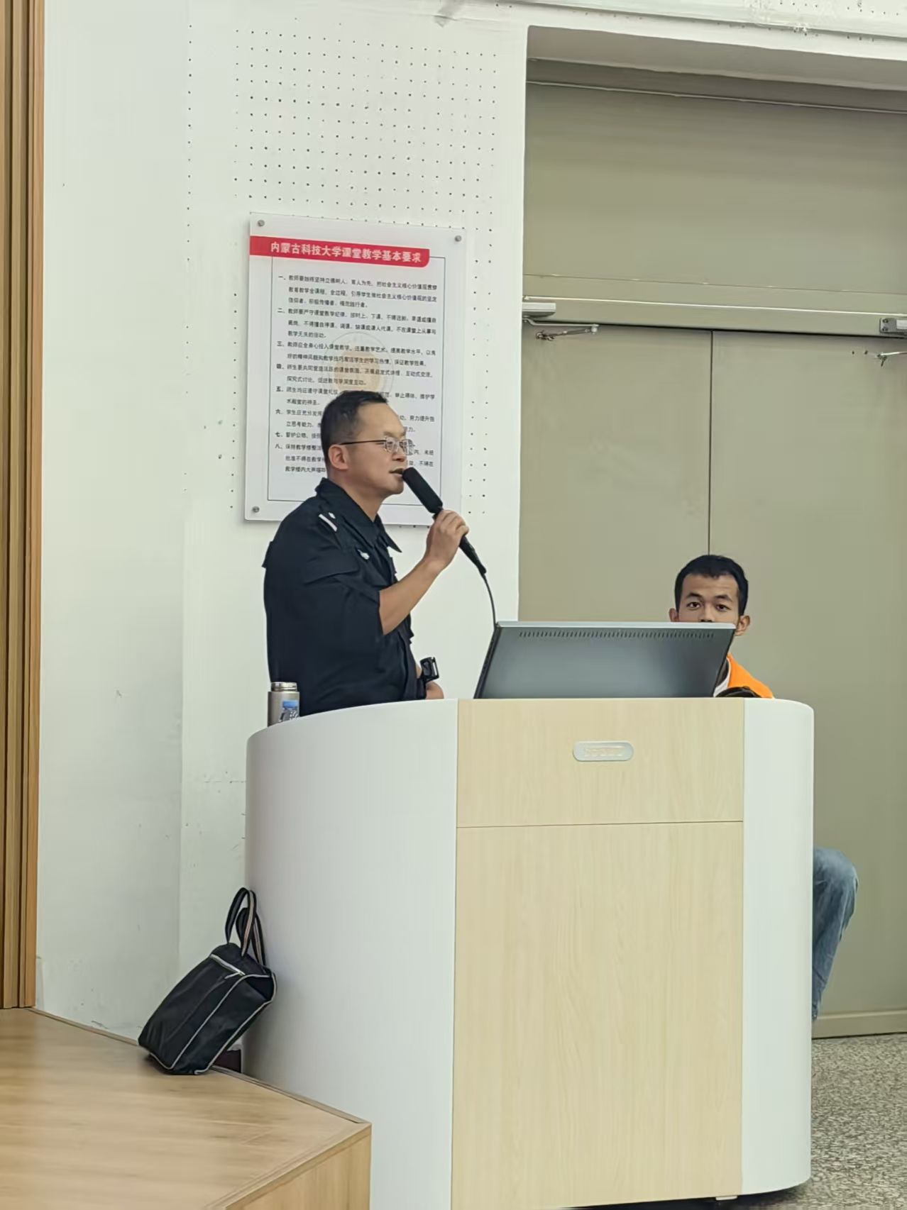 在消防安全知识普及培训讲座上,公司邀请包头市公安局教培支队警务理论教研室主任艾广勇及包头市安全健康教育中心讲师张恒,分别就如何远离和防范诈骗,正确预防和处理火灾等内容,通过鲜活的案例和诙谐的讲解,对新生进行了专题安全教育知识科普。