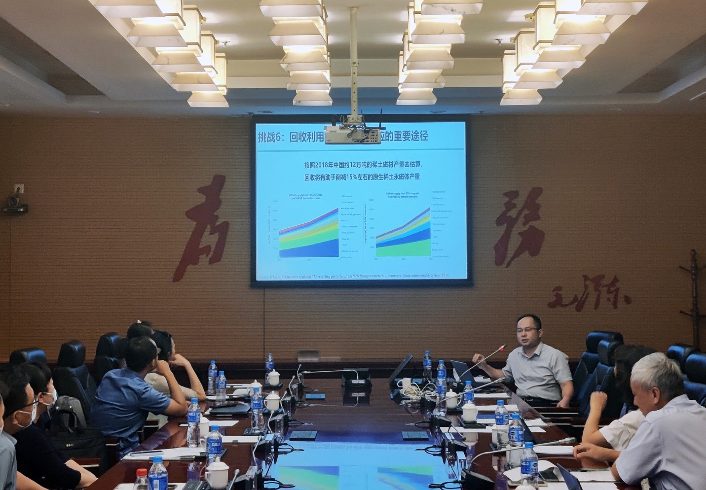 中国科公司城市环境研究所陈伟强研究员在《稀土元素的物质流分析及其启示》的报告中对稀土元素进行了图谱分析,他以“铕”的“故事”为例,认为一些紧缺的战略资源在一定的技术条件下是可替代的,认同杨丹辉教授提出的在技术允许、政策到位、人才具备三个条件满足条件下,可以替代的观点。研究数据显示一些应用以及人才准备周期一般为3~5年。他肯定了稀土在“碳中和”中发挥的重要作用,但是其作用评价应实事求是。报告还提出稀土资源利用和环境保护要协同,国内资源与国际资源利用政策协同,在“用”的同时,企业实体和行业应积极参与全球绿色低碳标准制定。