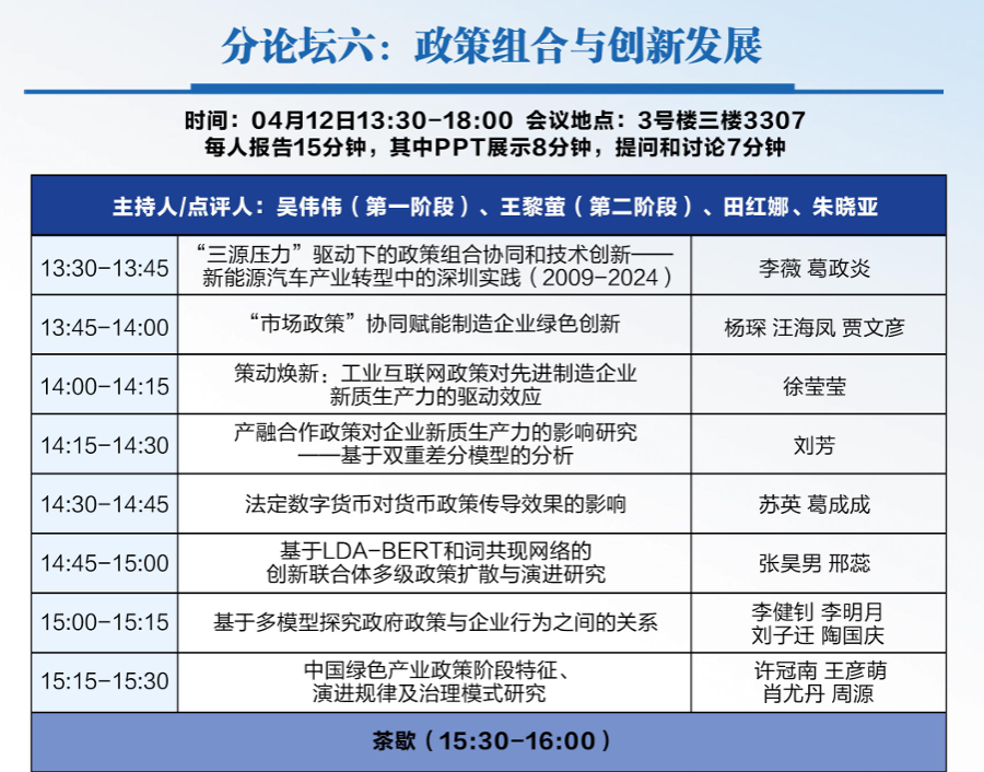 2025年4月12日至13日,以“数智创新与战略转型:理论、实践与政策”为主题的第三届中国创新发展政策与管理年会在广州举行。本届年会由中国科学学与科技政策研究会主办,中国科学学与科技政策研究会创新与发展政策专委会、广东工业大学管理公司、粤港澳大湾区人才发展战略研究院、广东工业大学创新理论与创新管理研究中心、中国科学学与科技政策研究会数字创新与管理专委会联合承办,中国科学学与科技政策研究会理事长、中国科公司创新发展研究中心主任穆荣平担任大会主席,中国科学学与科技政策研究会副秘书长、中国科公司大学特聘教授陈凯华和广东工业大学管理公司经理吴小节教授担任大会学术委员会联合主席。年会吸引了全国近200所高校和科研机构的500余名创新领域学者及师生参会。 年会设置了13场主旨报告、15个平行分论坛和6家期刊见面会。在期刊见面会上,《管理世界》《南开管理评论》《科研管理》《科学学研究》《管理评论》《Innovation and Development Policy》等期刊的代表与参会学者展开深入交流,详细解读期刊的办刊理念、选题方向及投稿规范,为学者们提供了宝贵的学术发表指导。 平行论坛环节,讨论涵盖数智创新与转型、创新发展的中国模式、创新网络与创新生态系统、关键核心技术突破、科技创新政策与平台支撑、政策组合与创新发展、创新链人才链与产业链融合发展、数智赋能战略转型、数智赋能产业高质量发展、数绿协同创新发展、数智人才发展与创新、数据要素市场化与伦理治理、数智化与治理体系现代化等前沿议题。 公司2023级应用经济学专业硕士研究生杨琛同学的论文入选此次论坛,并受邀在“政策组合与创新发展”分论坛发言。 学术会议是展示研究成果、交流新思想和建立专业联系的绝佳平台。通过参与学术会议,同学们有机会深入了解自己研究领域的最新动态和学术前沿,这不仅能够启发研究思路,还能增长学术见识。 公司高度重视研究生科研创新能力培养,并致力于营造积极向上的学术环境,以促进研究生教育质量的持续提升。公司努力营造积极的学术氛围,鼓励并支持研究生积极参与国内外高水平学术会议,支持研究生们的成长和发展,期望研究生们在学术探索的道路上不断进步,实现自己的学术梦想!