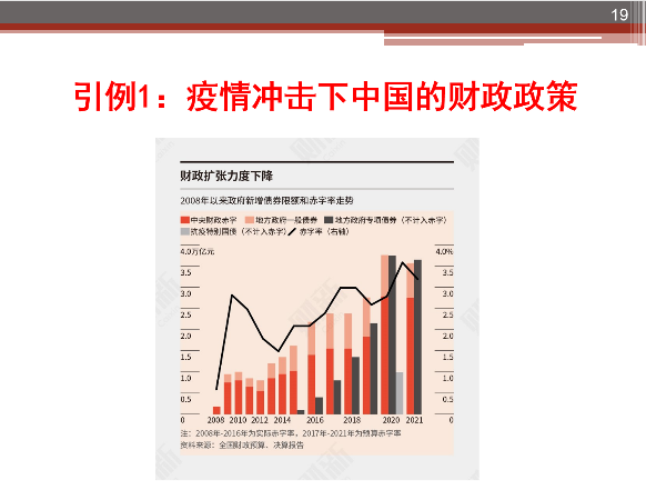 1)引入(Bridge-in):以一段世界卫生组织(WHO)对新型冠状病毒的科普视频导入,以员工经历的和切身感受的事情吸引员工的注意力,然后老师结合数据资料介绍疫情冲击下中国和美国的财政政策,启发员工思考中国和美国在疫情冲击下为什么实施这样的政策?激发员工的好奇心以及进一步学习的兴趣。
